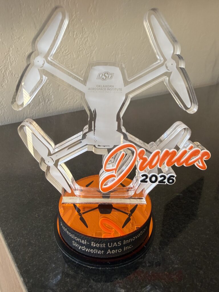 Skydweller Aero is honored to have been named Best UAS Innovation at the inaugural Dronies Awards hosted by the Oklahoma Aerospace Institute for Research and Education (OAIRE) at Oklahoma State University during Aerospace Week.